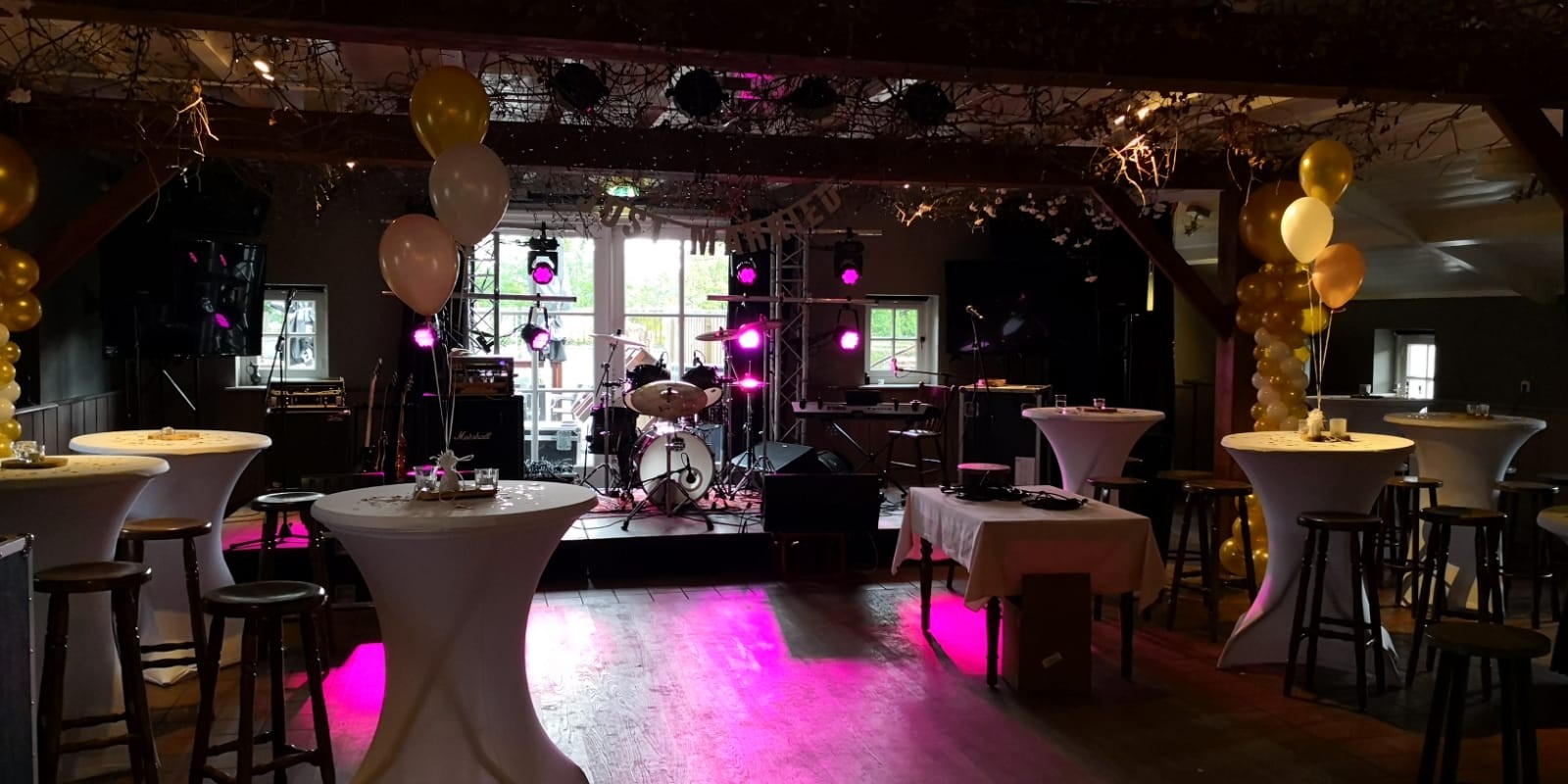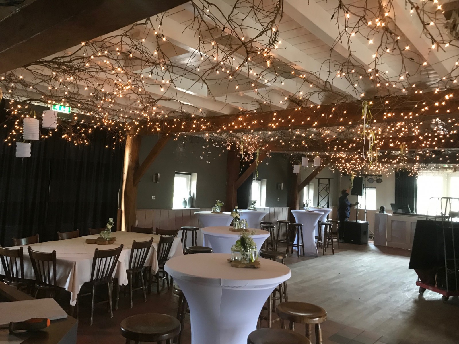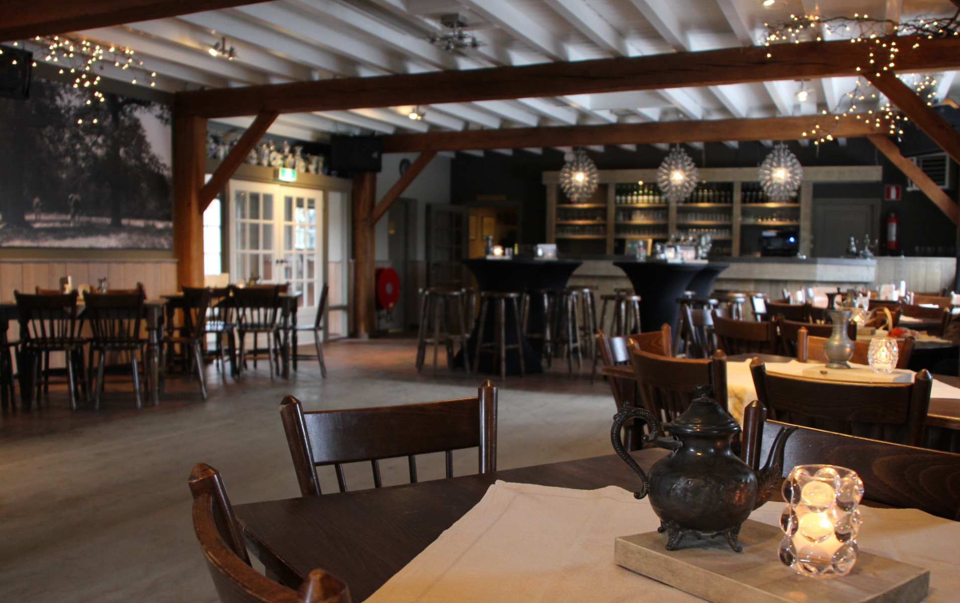 Onze zaal is gehuisvest in de vroegere schuur. Deze ruimte met een prachtige houten constructie en royale dansvloer is zeer in trek voor diverse feesten en partijen. De vele mogelijkheden van deze zaal maken het ook de ultieme trouwlocatie.